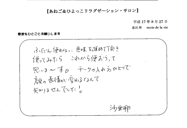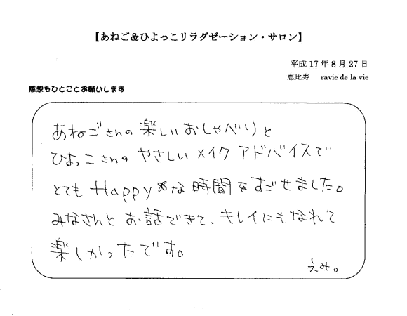 安井レイコさん【あねご】の話しを聞きながら、【ひよっこメイク】にセルフ・エステのレッスンを。
